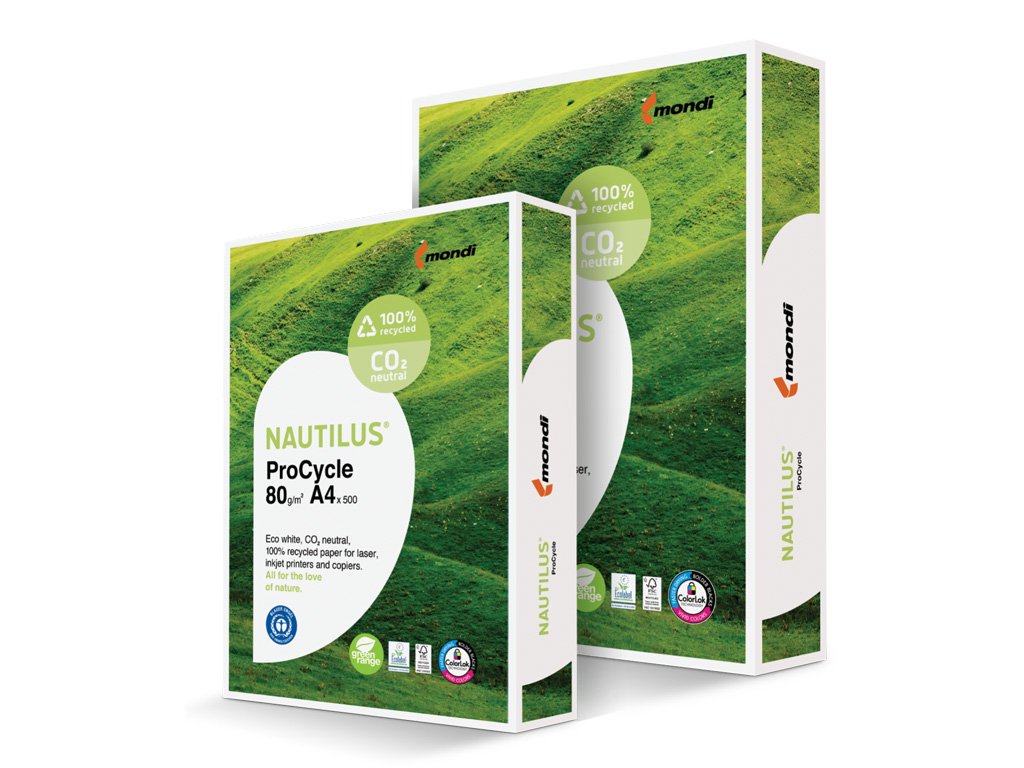 NAUTILUS® ProCycle office paper, the first of its kind – Nautilus ProCycle is the new premium 100% recycled paper from Mondi that combines a pleasing high whiteness with the stringent Blue Angel environmental criteria.